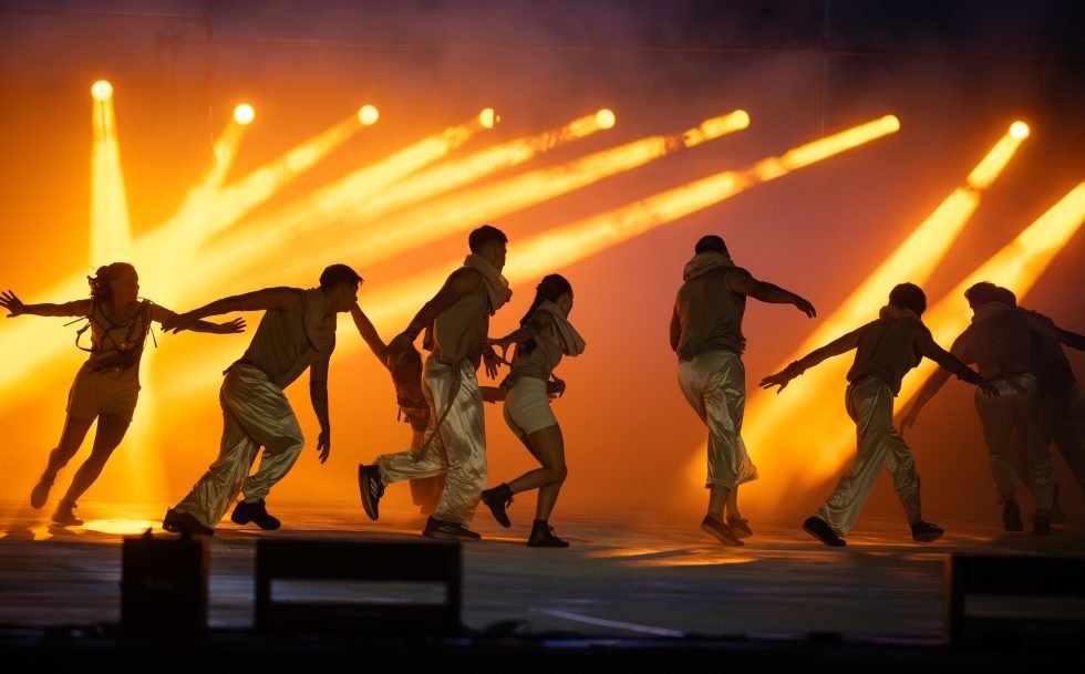 A ello se sumó el uso de tecnología de control sincronizado para sonido e iluminación, lo que permitió coordinar en tiempo real música, coreografías y efectos visuales a lo largo de toda la puesta artística.