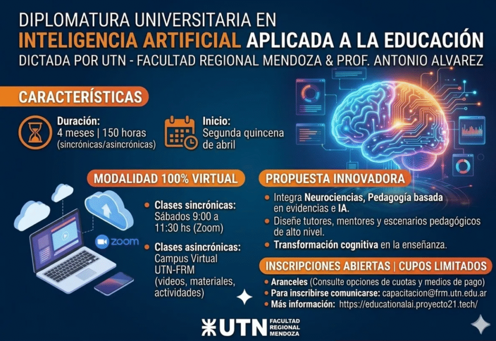 La UTN lanza una diplomatura en inteligencia artificial aplicada a la educación con formación práctica para docentes y directivos